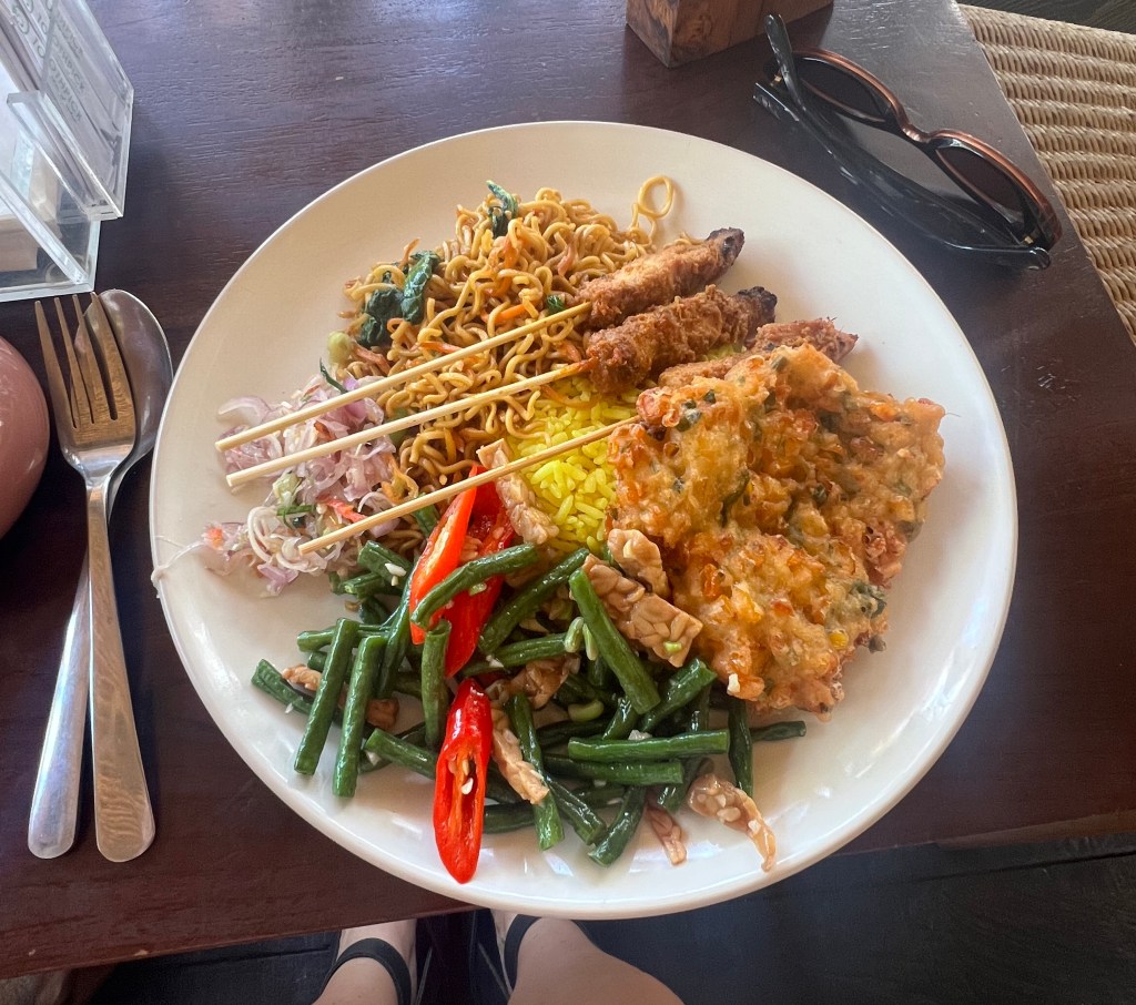 My absolutely fave Indonesian food on the whole island. Choose your rice base, then pick your protien and sides to make up the most beautiful nasi campour plate. This place is cheap and clean and highly reccomend. See below!